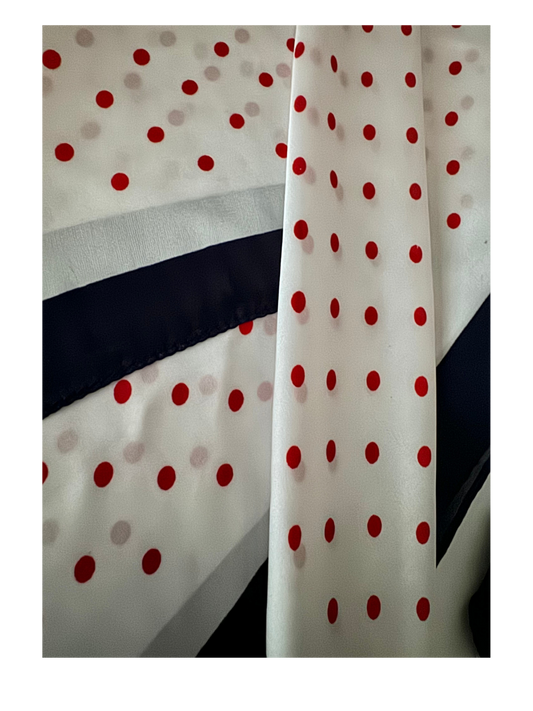 Red Polka Dot Scarf with Blue Trim