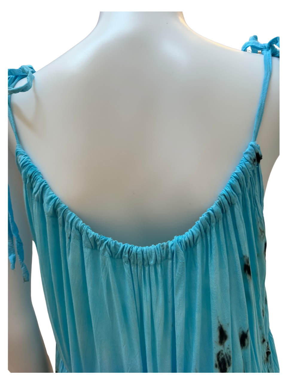 Embrace your free spirit with our strappy tie-dye long dress, a bohemian-inspired piece perfect for beach or resort wear. The vibrant tie-dye pattern creates a unique and colorful look that exudes a sense of carefree joy. The spaghetti straps add a touch of delicacy, while the flowing maxi length provides a relaxed and effortless vibe. Whether you're strolling along the shore, lounging poolside, or dancing the night away at a beach party, this dress will keep you looking and feeling your best. The lightweight fabric ensures comfort and breathability, making it an ideal choice for warm weather and sunny days. Let your inner hippie shine with this beautiful and playful tie-dye dress.