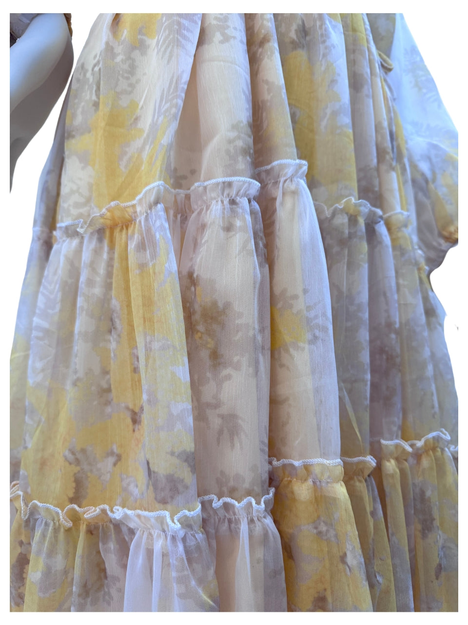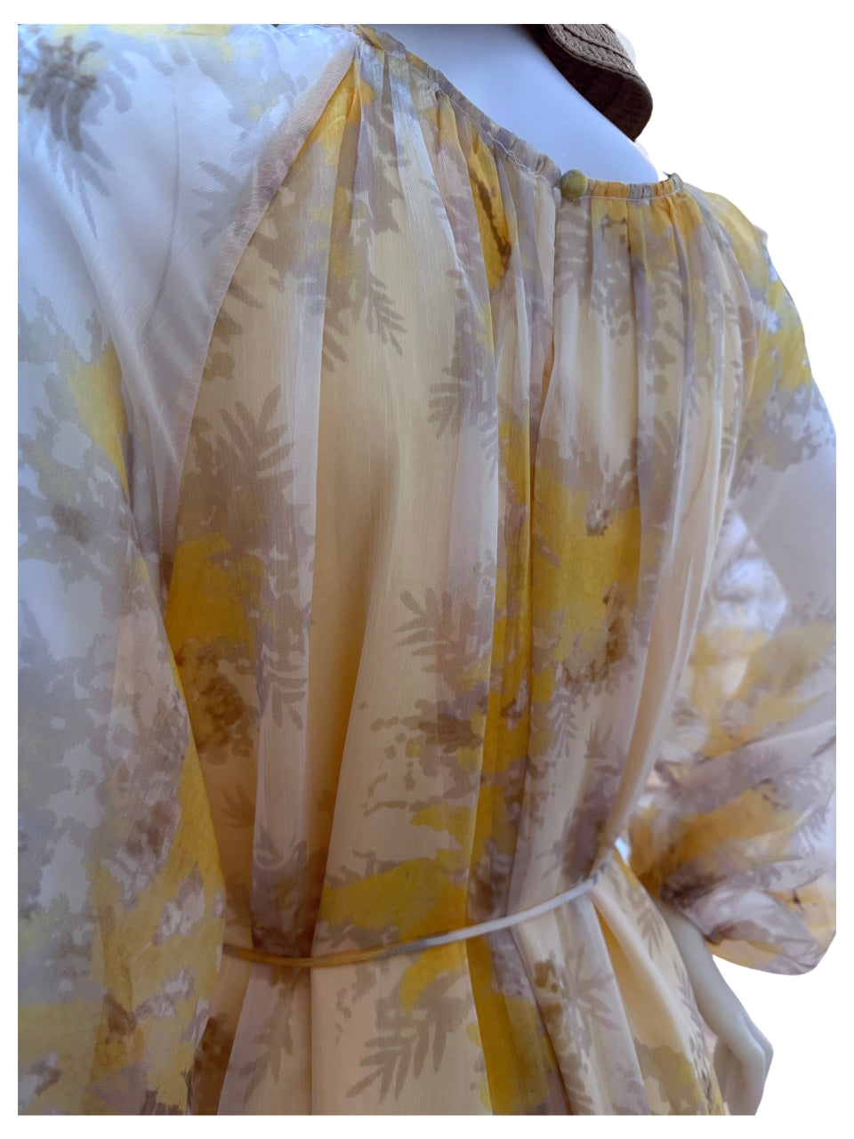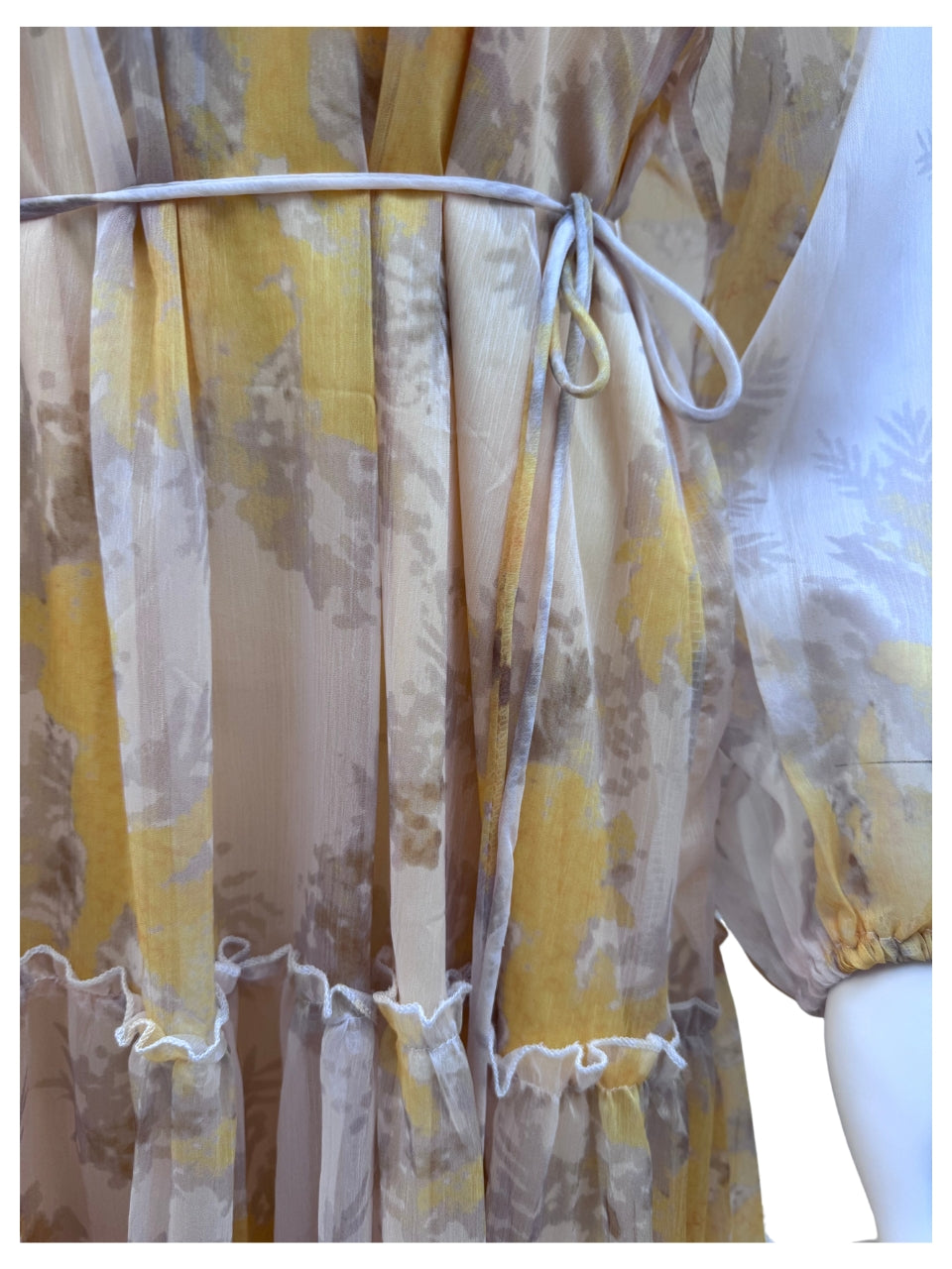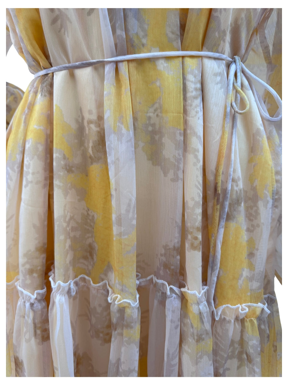 Step into summer with elegance in our soft, feminine long dress, adorned with a vibrant yellow print. The long sleeves add a touch of sophistication, while the flowy silhouette creates a comfortable and flattering fit. The yellow print exudes warmth and joy, making this dress perfect for any occasion, from garden parties to beachside events. Pair it with sandals and a statement necklace for a casual look, or dress it up with heels and a clutch for a more formal affair. This versatile dress is sure to become a favorite in your summer wardrobe.